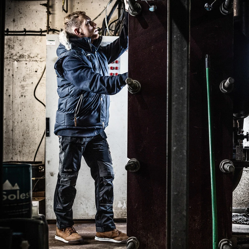 Made from a durable padded polyester with a warm polycotton lining. This gilet has 2 reinforced outer pockets and an inner pocket, drawcords at the waist, a shaped hem and a removable hood.