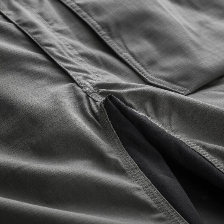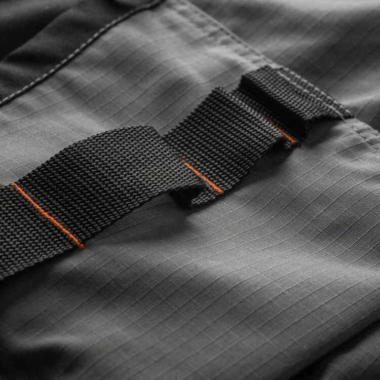 Lightweight ripstop fabric for comfort and performance. Flexible slim fit with stretch panels for freedom of movement. Easy access holster pockets, cargo pocket and mobile phone pocket. Triple-stitched seams and canvas pockts for durability.Tool loops and D-ring for storage. YKK zip fly. 65% polyester 35% cotton ripstop, 220gsm.