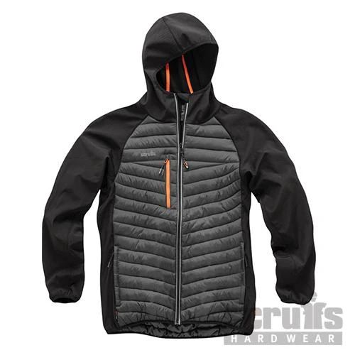 Lightweight, padded softshell jacket made from hard-wearing nylon fabric. Insatherm padding insulates the core and retains body heat. Flexible softshell sleeves and side panels. Elasticated hood, hem and cuffs keep wind out and warmth in. Shell 1: 96 percent polyester 4 percent elastane. Shell 2: 100 percent nylon, 330gsm.